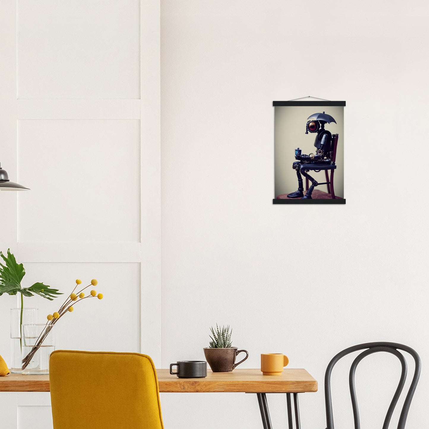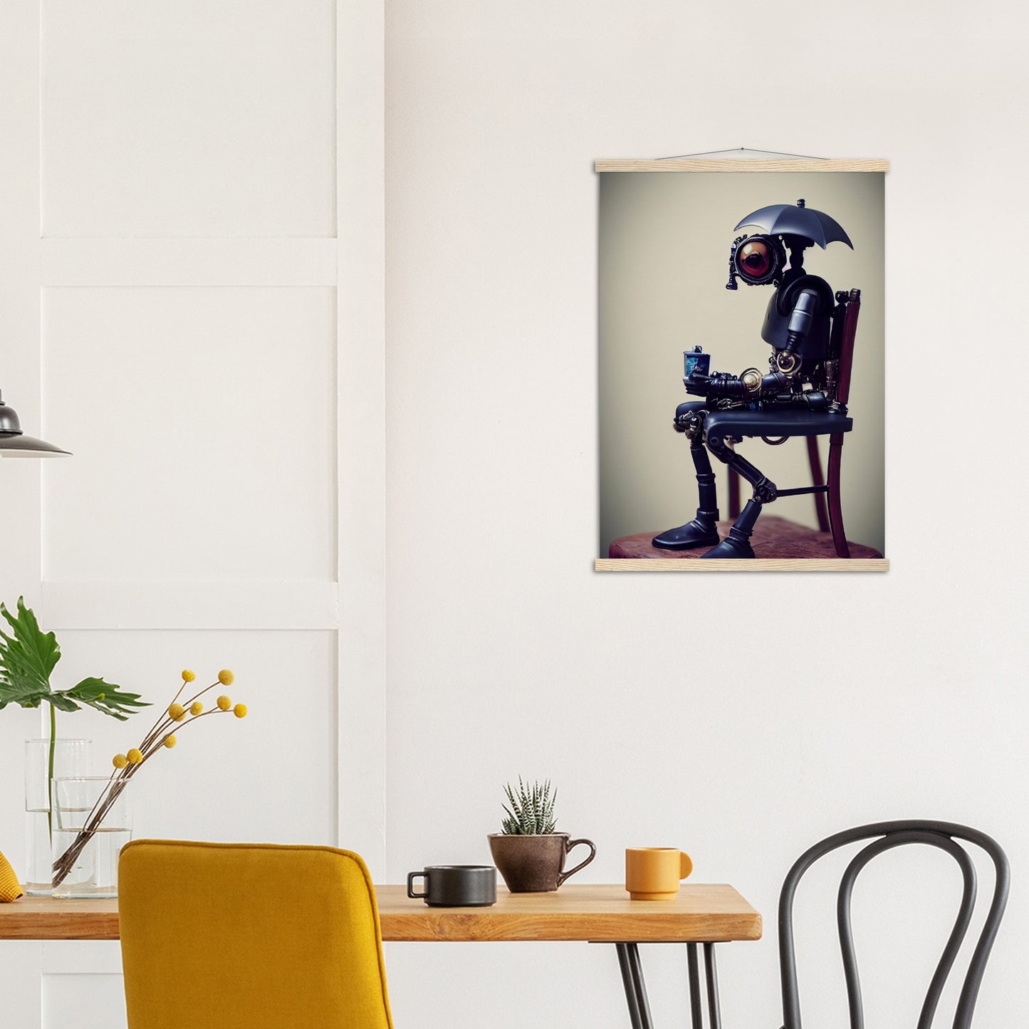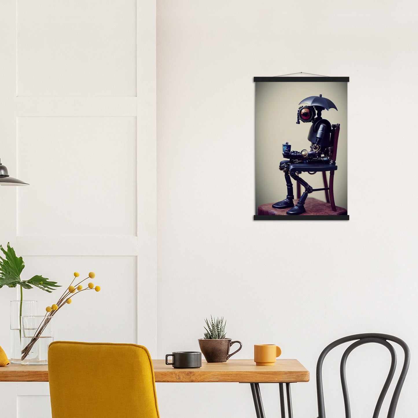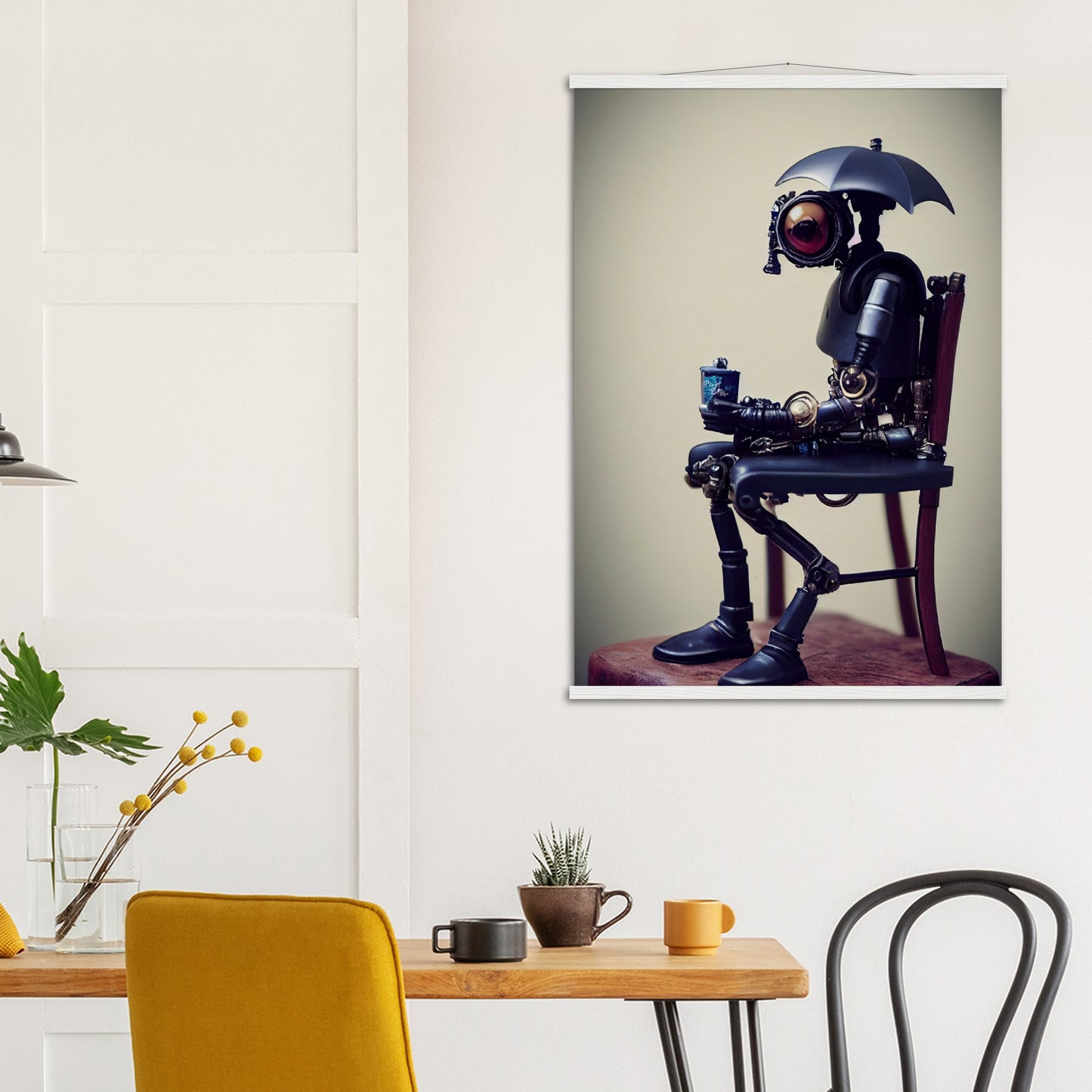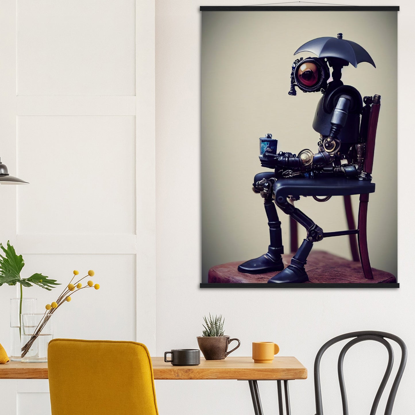 Poster mit Leisten - Tiny robot with an umbrella -"Louis"