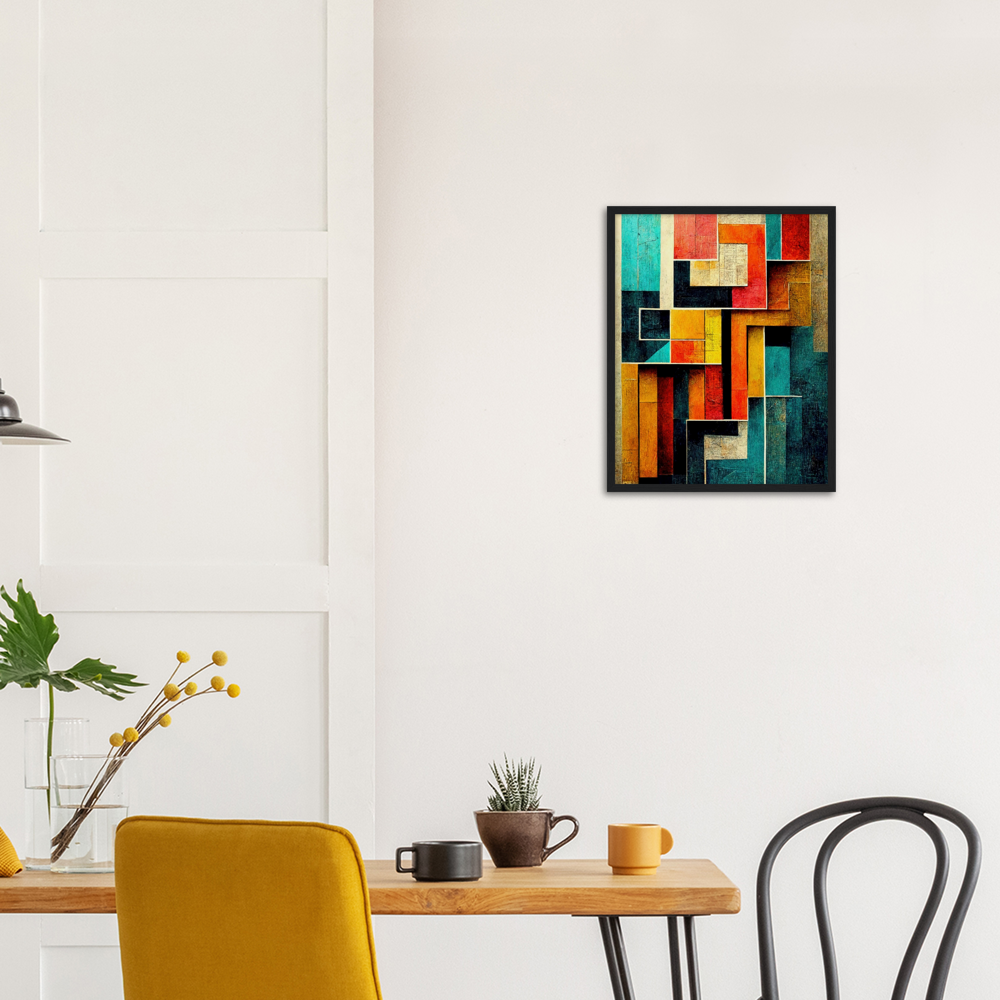 Poster mit Rahmen - Abstract cubistic painting on wood