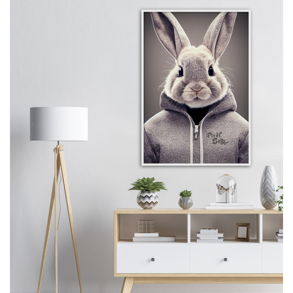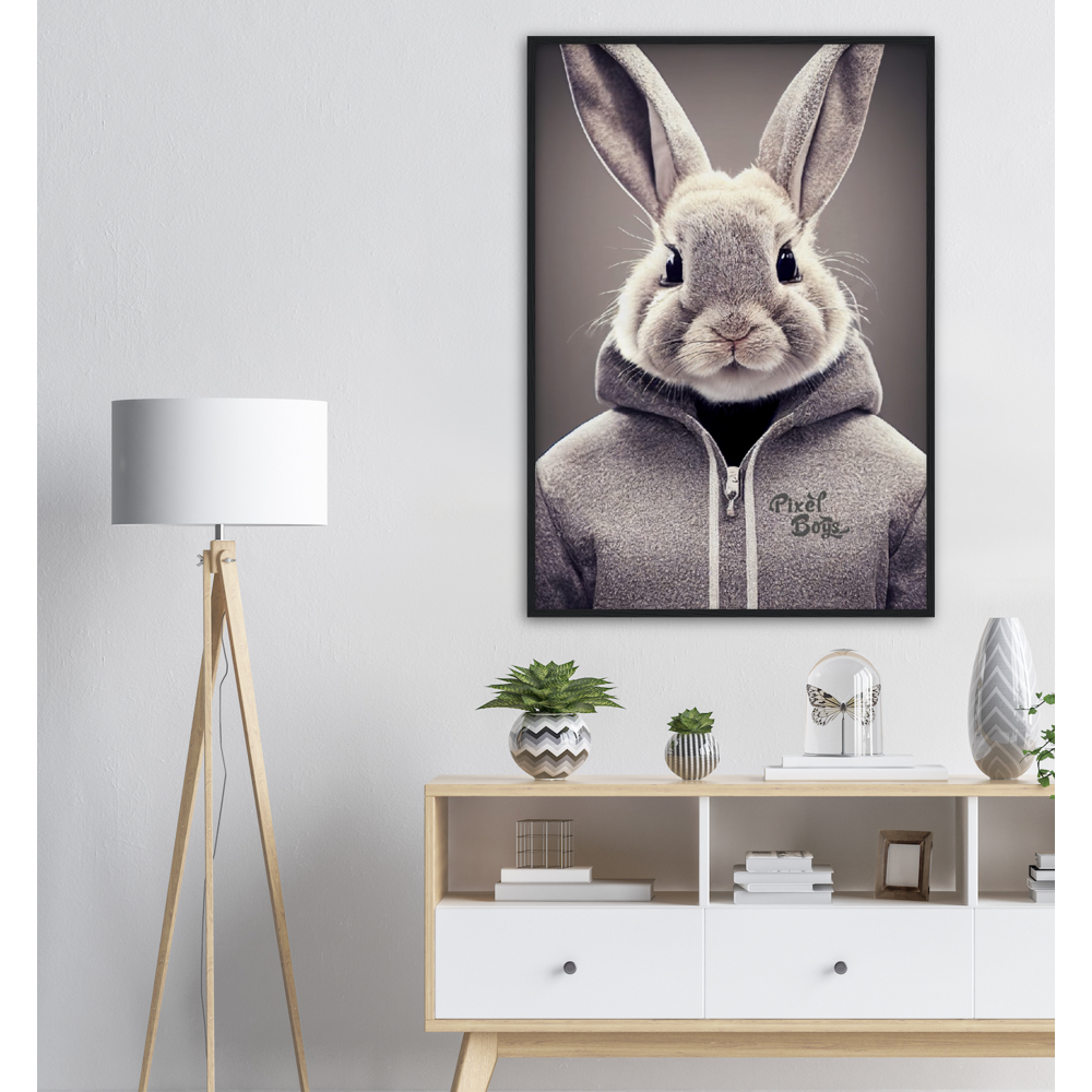 Poster mit Rahmen - Bunny in grey Hoodie - "Constantin"
