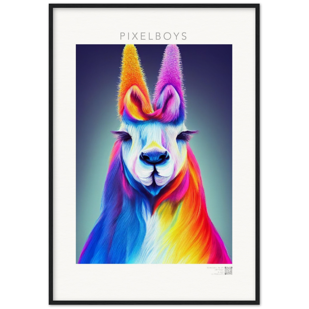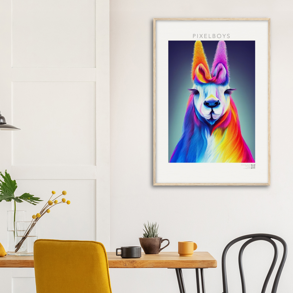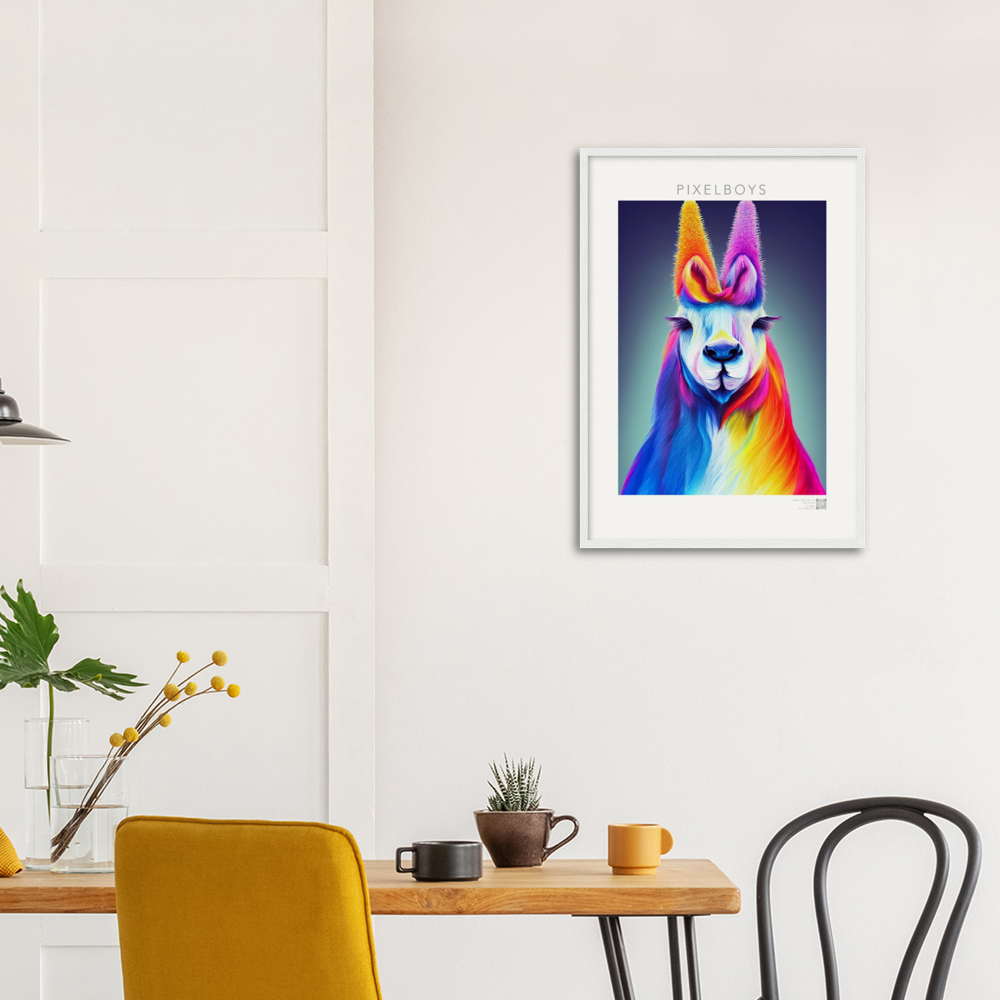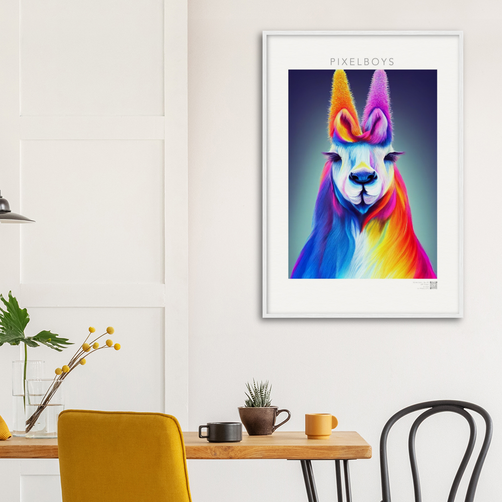 John Grayst, der Künstler hinter der Kollektion „Karma Lama“, bezeichnet Lama-Menschen als Personen, die ihren Weg gehen und vor nichts zurückschrecken. Sie mögen für andere Personen etwas übertrieben wirken, aber konzentrieren sich im Grunde nur darauf, etwas zu erreichen. Als wir von Pixelboys mit unserem Künstler im Gespräch waren haben wir direkt gedacht, diese Eigenschaften mit Drag Queens zu verknüpfen. Aus diesem Grund heißt Karma Lama No. 2 auch Edna. In unserem Fall zeigt das Bild eine Lama Dame mit auffälliger Schleife und wundervollem Fell in Regenbogenfarben. Ein Poster, nicht nur für Diven!