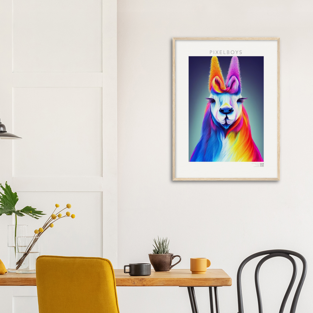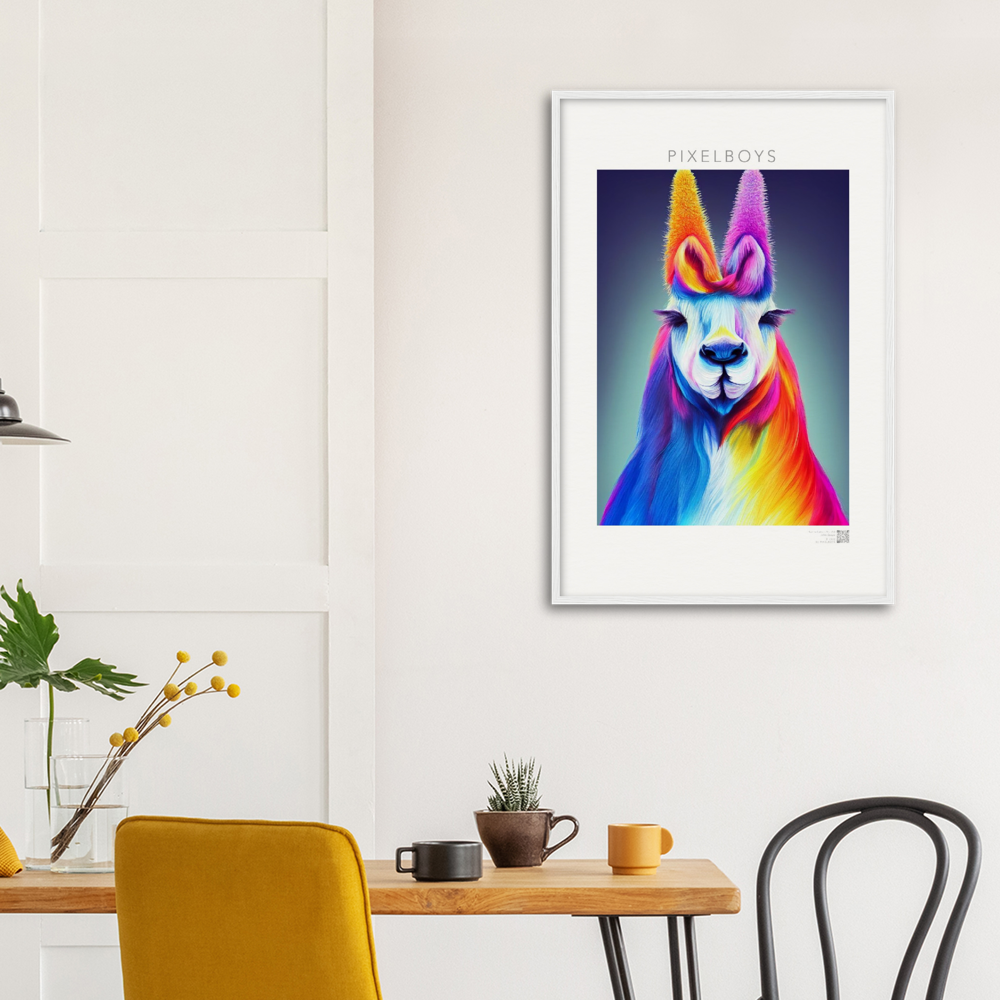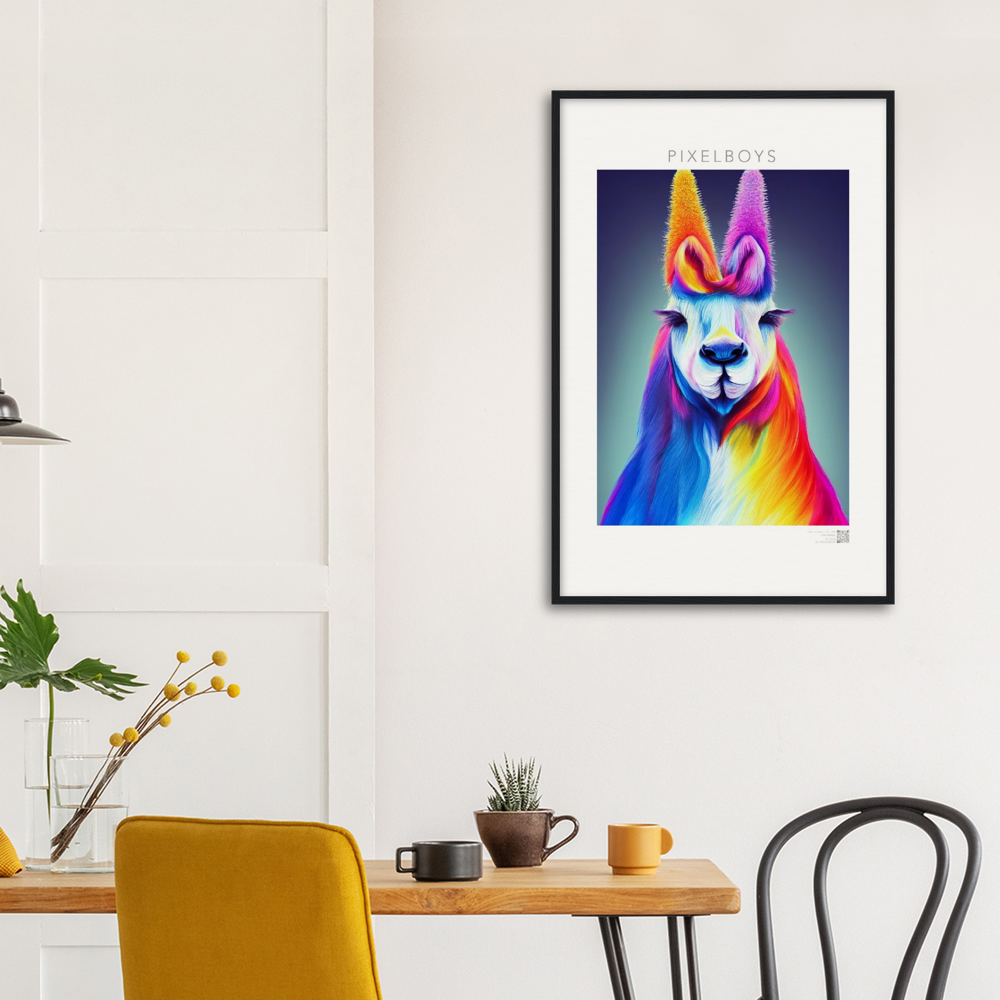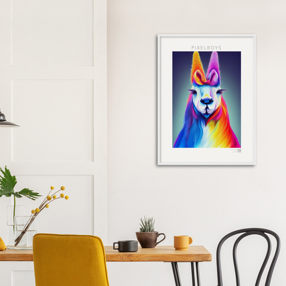 John Grayst, der Künstler hinter der Kollektion „Karma Lama“, bezeichnet Lama-Menschen als Personen, die ihren Weg gehen und vor nichts zurückschrecken. Sie mögen für andere Personen etwas übertrieben wirken, aber konzentrieren sich im Grunde nur darauf, etwas zu erreichen. Als wir von Pixelboys mit unserem Künstler im Gespräch waren haben wir direkt gedacht, diese Eigenschaften mit Drag Queens zu verknüpfen. Aus diesem Grund heißt Karma Lama No. 2 auch Edna. In unserem Fall zeigt das Bild eine Lama Dame mit auffälliger Schleife und wundervollem Fell in Regenbogenfarben. Ein Poster, nicht nur für Diven!