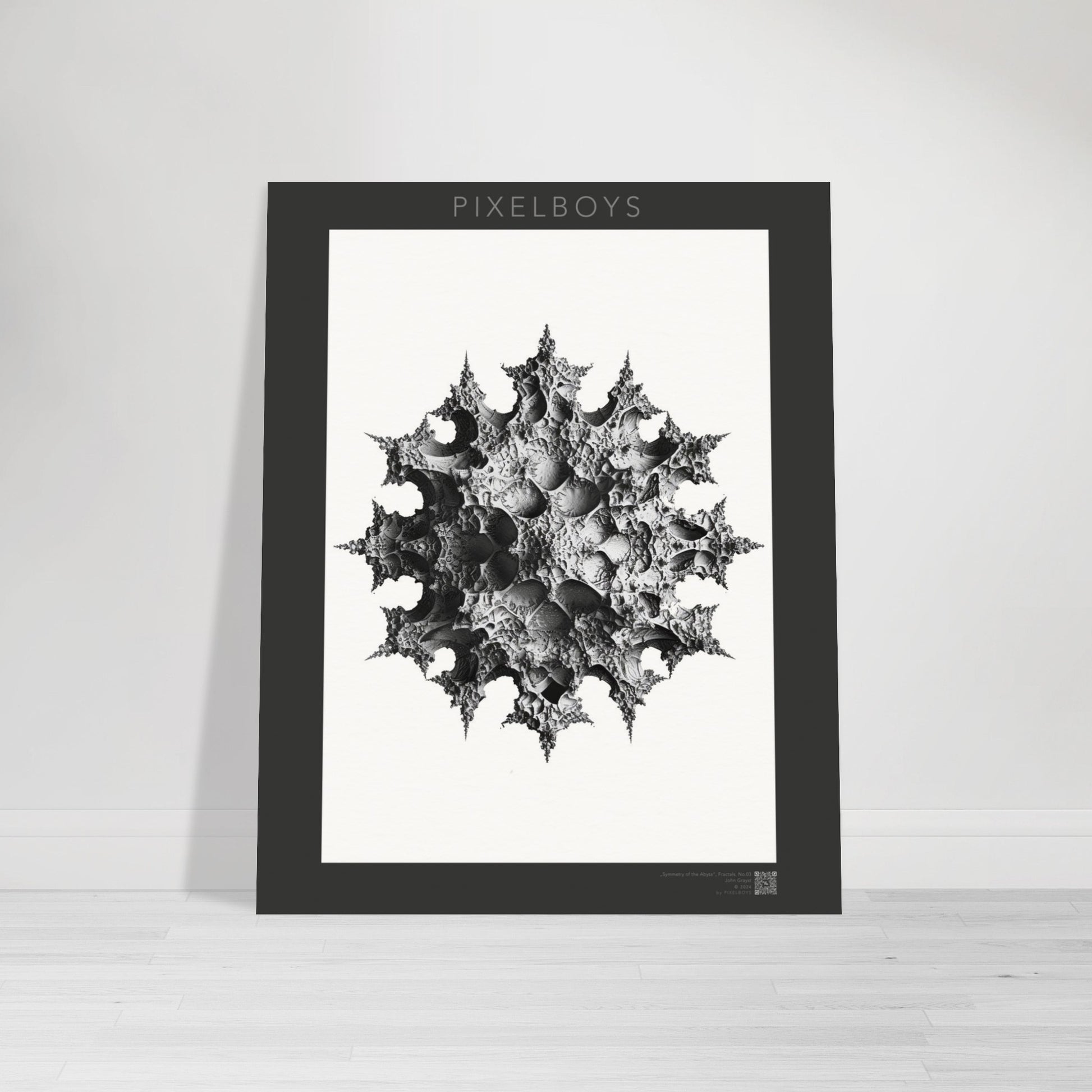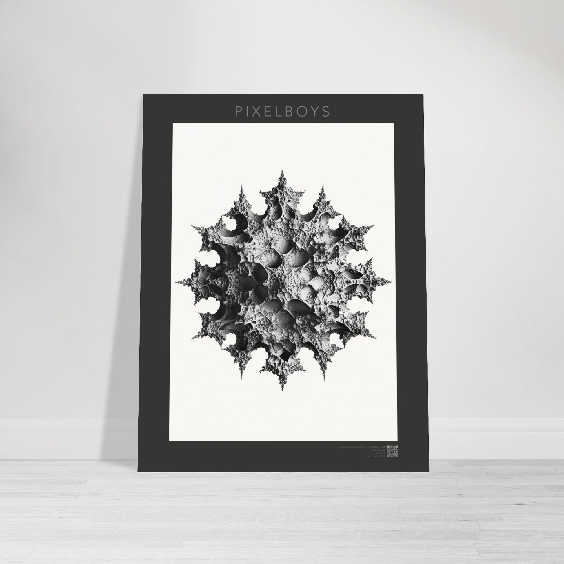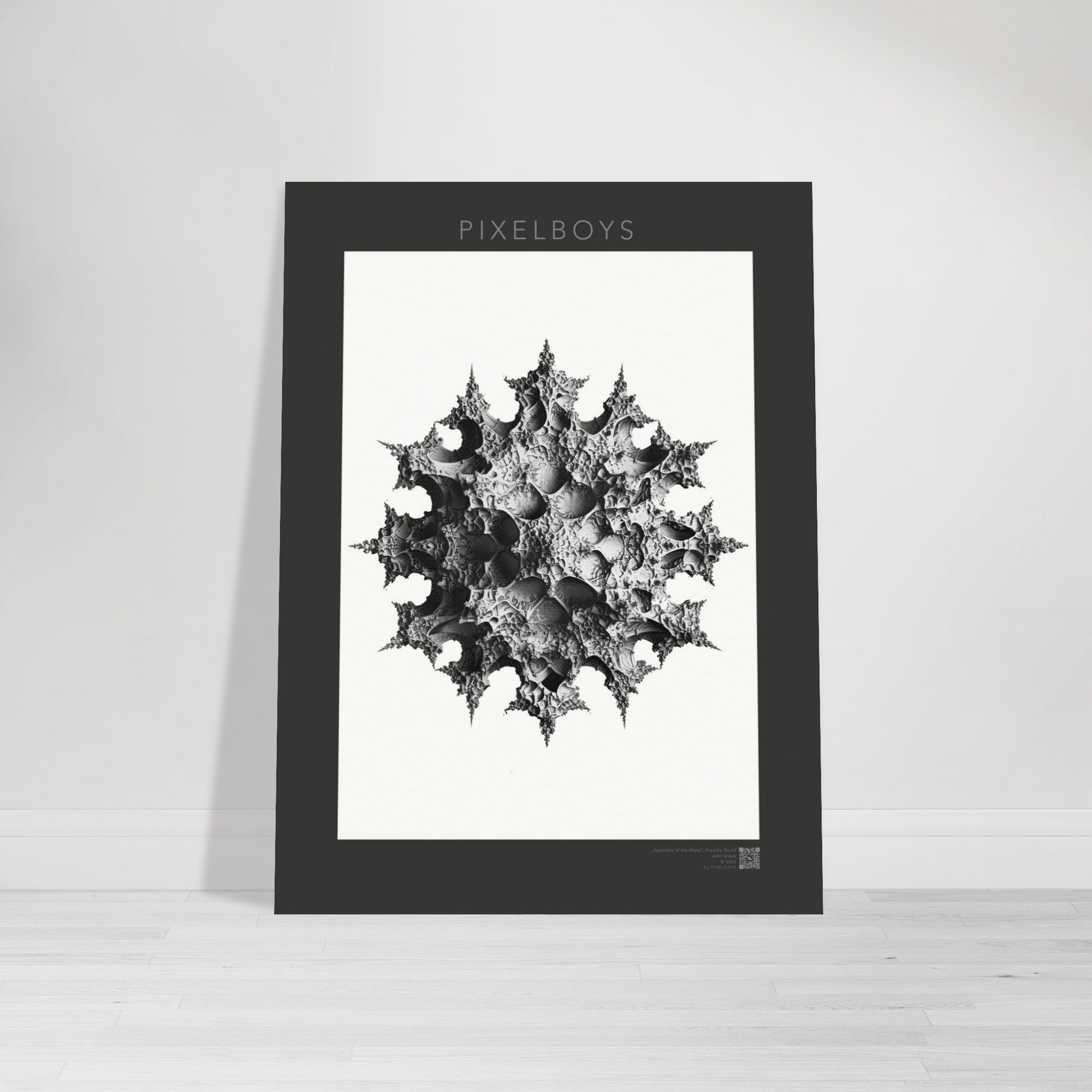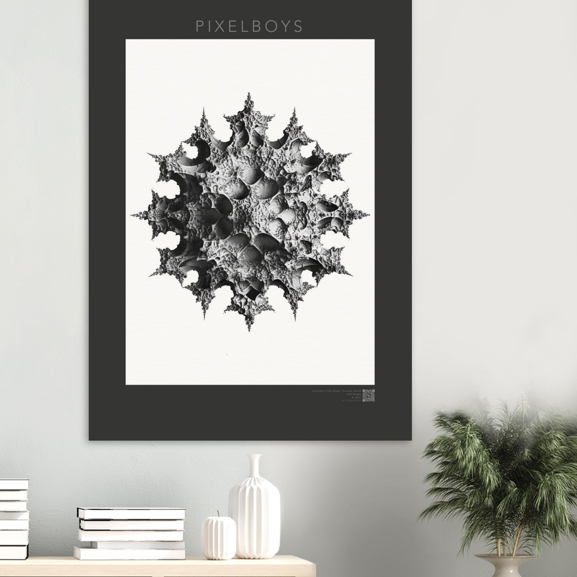 Symmetry of the Abyss ist ein beeindruckendes Poster des digitalen Künstlers John Grayst, das eine tiefe Wertschätzung für die komplexen Muster der Natur widerspiegelt. Dieses Kunstwerk, erhältlich bei PIXELBOYS, verkörpert die faszinierende Verbindung zwischen Ordnung und Chaos, die in den fundamentalen Strukturen unserer Welt zu finden ist.