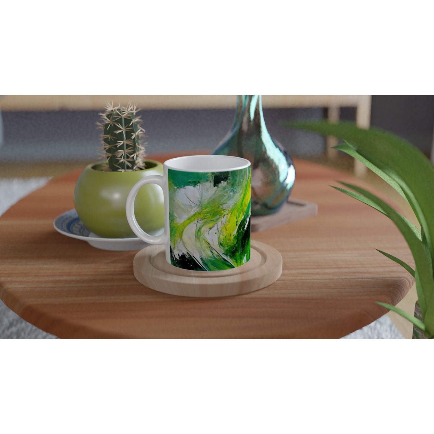 Diese wunderschöne Keramiktasse eignet sich perfekt für jeden Anlass: den Morgenkaffee, eine heiße Schokolade oder dein Heißgetränke der Wahl. Die Tasse ist glänzend weiß und die Drucke kommen darauf wunderschön und lebendig zur Geltung. Der Druck behält seine Qualität und seinen Glanz auch in der Mikrowelle und in der Spülmaschine.